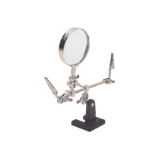 Soporte con lupa y dos brazos con clip. Ideal para trabajos de soldadura.